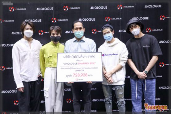 โดยแยกเป็น เงินจากการจำหน่าย GIVING BOX โดยไม่หักค่าใช้จ่าย และเงินส่วนหนึ่งจากการจำหน่าย MISSING BOX จำนวน 220,548.66 บาท ให้กับมูลนิธิรามาธิบดีฯ เพื่อสมทบทุนในการซื้อเครื่องมือแพทย์ ในการต่อสู้โรค COVID-19 และมอบเงินจำนวน 40,000 บาท ให้ศูนย์การเรียนไร่ส้มวิทยา สำนักงานฝาง มูลนิธิกระจกเงา โดยเงินจำนวนนี้จะนำไปสมทบทุนซื้อเครื่องฟอกอากาศ เพื่อช่วยลดปัญหาฝุ่นละอองในอากาศอันเกิดจากไฟป่าจังหวัดเชียงใหม่ให้กับเด็กๆ ในศูนย์การเรียนดังกล่าว พร้อมทั้งมอบถุงยังชีพจากแคมเปญ “4NOLOGUE SHARING BOX” จำนวนทั้งสิ้น 1,200 ถุง มูลค่ารวม 728,928 บาท ให้กับผู้ที่ได้รับผลกระทบจาก COVID-19 ผ่านโครงการเทใจ โดยมีตัวแทนจากมูลนิธิเพื่อการพัฒนาเด็ก,มูลนิธิเด็กอ่อนในสลัมฯ,มูลนิธิเพื่อนหญิง,มูลนิธิพิทักษ์สตรี มารับมอบ และยังกระจายไปให้ผู้ขาดแคลนในชุมชนทรัพย์สินเก่า แขวงพลับพลา อีกด้วย