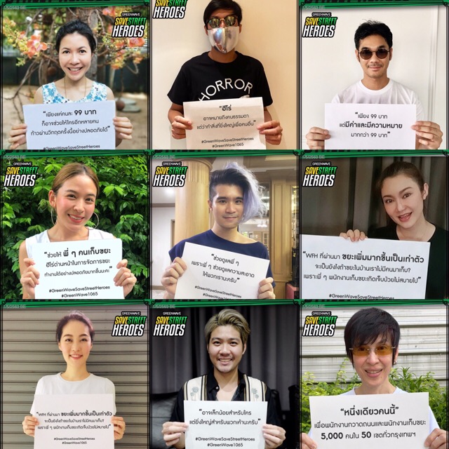 กรีนเวฟ นำทีม ศิลปิน-ดารา ยกทัพชวนส่งกำลังใจให้ฮีโร่บนท้องถนน ระดมทุนซื้อหน้ากากผ้าและถุงมือยางให้ เจ้าหน้าที่กวาดถนน-เก็บขยะ 5,000 คน