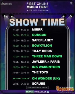 เตรียมนับถอยหลังรอความมันส์ #ฮิตแบบไม่มีอะไรกั้น ที่ยิ่งใกล้วัน ก็ยิ่งเพิ่มความมันส์สุดตื่นเต้น พร้อมโชว์สุดอลังการแบบหยุดไม่อยู่แล้วจริง ๆ ในงาน “Online Music Festival Top Hits Thailand” เพราะนอกจากจะรวมศิลปินดังที่มีเพลงฮิตติดใจคนฟังทั้งประเทศจัดเต็ม 10 วง นำทีมโดย The TOYS, BOWKYLION, JAYLERR X PARIS, INK WARUNTORN, SCRUBB, TILLY BIRDS, THREE MAN DOWN, SAFEPLANET, MIRRR และ GUNGUN แล้ว ล่าสุดผู้จัดยังเพิ่มความพิเศษสุดเซอร์ไพร์ส ด้วยการคว้าวงดนตรีดังระดับอินเตอร์อย่าง “Oh Wonder” โผล่ร่วมแจมส่งตรงความมันส์จากเกาะอังกฤษอีกด้วย! เรียกได้ว่างานนี้ฮิตทั้งไทยทั้งเทศ สมกับเป็นงานมิวสิคเฟสติวัลออนไลน์แนวใหม่อินเตอร์แอคครั้งแรกของเมืองไทยจริง ๆ