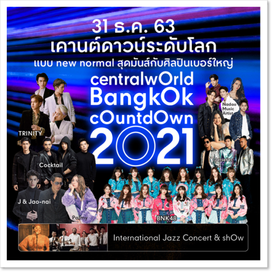 31 ธ.ค. 63 กับเคาท์ดาวน์แห่งปี centralwOrld Bangkok Countdown 2021 จัดเต็มEntertainment เที่ยงวันยันเที่ยงคืน ตอบทุกกลุ่มเป้าหมาย ขยายความสุขด้วยดนตรีแจ๊สระดับโลกในวันที่ 31