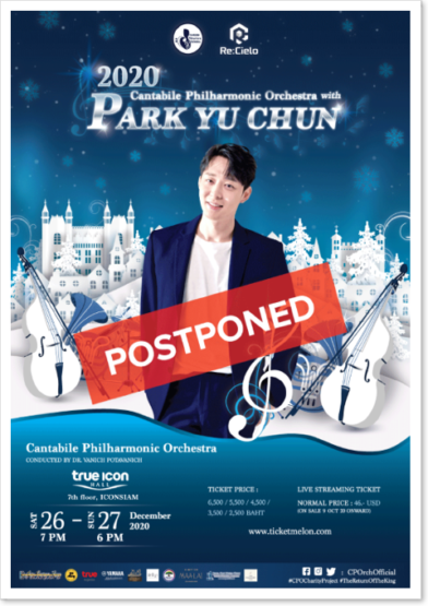 เลื่อนจัดคอนเสิร์ต “2020 Cantabile Philharmonic Orchestra with Park Yu Chun”