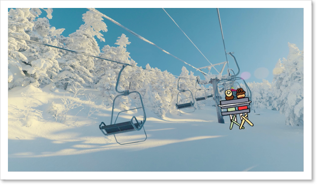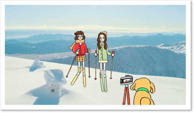 โดยที่เรื่องราวเริ่มจากทั้งสองสาว นึกจินตนาการไปโดยผ่านเทคนิคการตัดต่อภาพจริงกับการ์ตูนอนิเมะน่ารักๆ ซึ่งเป็นตัวแทนสาวๆ ได้เดินทางพร้อมภาพบรรยากาศสวยๆ ที่เริ่มจากบน รถไฟชินคันเซ็น(Shinkansen) ในสถานีรถไฟ โตเกียว(Tokyo Station) ไปยังจุดมุ่งหมาย สถานีรถไฟ นางาโนะ(Nagano Station) ที่จะมีจุดท่องเที่ยวสำคัญ อาทิ หมู่บ้านออนเซ็น(Shibu Onsen), ลิงหิมะแช่ออนเซ็น(Snow Monkey) และ สกี รีสอร์ท ชิงะ โคเก็น(Shiga Kogen) ชั้นนำของญี่ปุ่น ที่มีประวัติว่า แม้แต่เชื้อพระวงศ์ของญี่ปุ่นก็ยังเสด็จมาเยือน โดดเด่นด้วยปริมาณหิมะที่ตกทับถมจนสูงหนาและหิมะเนียนละเอียดราวกับผงแป้ง ดึงดูดให้นักท่องเที่ยวสายสกีจากทั่วโลกต้องมาเยือน