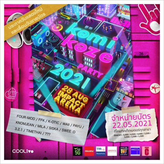 𝗖𝗢𝗢𝗟𝗶𝘃𝗲 จึงขอเลื่อนวันขายบัตรและวันแสดงคอนเสิร์ต 𝗞𝗔𝗠𝗜𝗞𝗔𝗭𝗘 𝗣𝗔𝗥𝗧𝗬 𝟮𝟬𝟮𝟭