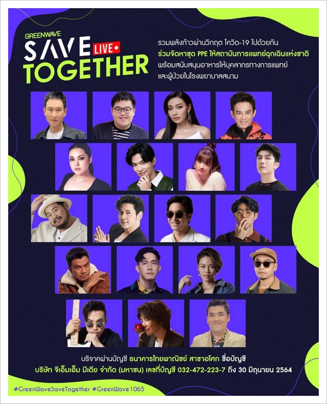 กรีนเวฟ นำทัพศิลปิน Live พิเศษ GREEN WAVE SAVE TOGETHER จัดซื้อชุด PPE และสนับสนุนอาหารให้บุคลากรทางการแพทย์-ผู้ป่วย