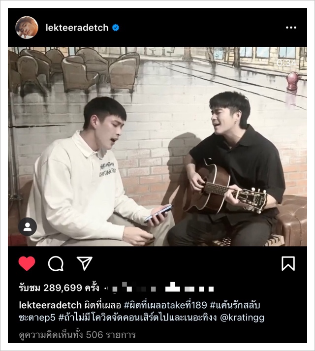 ด้านนักแสดง 2 หนุ่ม อาเล็ก ธีรเดช และ กระทิง ขุนณรงค์ ก็ขอโชว์เล่นกีตาร์ร้องสด ผ่านอินสตาแกรมส่วนตัวเผยให้เห็นสกิลอีกด้านที่แฟนๆ ชอบอกชอบใจกันกับการช่วยกันร้องเรียกว่าเป็นคู่พี่น้องที่น่ารักน่าเอ็นดูจริงๆ ใครยังไม่ได้ฟังตามไปฟังเพลงและรับชมมิวสิควีดีโอได้แล้วที่ YouTube : Ch3Thailand Music นอกจากนี้ยังมีช่องทางดาวน์โหลดกับ iTunes & Apple Music, Spotify, JOOX และ TikTok