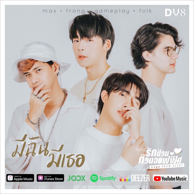 DV8 Thailand ขอส่งต่อพลังบวกให้ทุกคนในสถานการณ์ที่กำลังใจเป็นสิ่งสำคัญ ผ่านบทเพลง “มีฉันมีเธอ” เพลงประกอบซีรีส์ออนไลน์เรื่องใหม่ “รักป่วนก๊วนออฟฟิศ” (Work From Heart) เสียงร้องของ 4 นักแสดงหนุ่ม แม็กซ์-อชิระ เอทเตอร์, เกมเพลย์-กาญจน์ปพน เล่าลือเกียรติ, ฟร้อง-ศุภชัย แก้วมงคล, โฟล์ค-จักริน แสงเรือน งานนี้ทั้ง 4 หนุ่มตั้งใจถ่ายทอดพลังบวก เติมพลังใจ ผ่านเพลงฟีลกู๊ดเพลงนี้ให้กับทุกคน มีเนื้อหาให้กำลังใจ พร้อมจังหวะสนุกๆ ให้ได้โยกตาม ล่าสุดปล่อย MV (Studio Version) ให้ได้ชมกันแล้วทาง YouTube DV8 Thailand