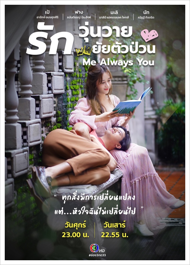 ติดตาม “ Me always You รักวุ่นวาย ยัยตัวป่วน” ซีรีส์โรแมนติคคอมเมดี้เบาสมอง ทุกวันศุกร์ เวลา 23.00-24.00 น. และวันเสาร์ เวลา 22.55-23.55 น. ทางช่อง 3 กด 33 เสนอเป็นตอนแรกวันศุกร์ที่ 27 สิงหาคม 2564 ออกอากาศพร้อมกับสถานนีโทรทัศน์ Anhui TV และสตรีมมิ่งบน Migu Video แพลตฟอร์มรายใหญ่ประเทศจีน