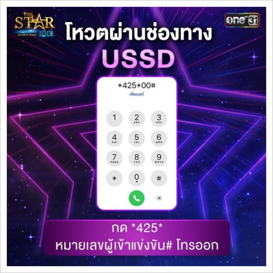 วิธีการโหวตแบบ USSD สามารถทำการโหวตได้เฉพาะจำนวนโหวต 1 โหวต อัตราค่าบริการ 6 บาท โดยมีรายละเอียด ดังนี้