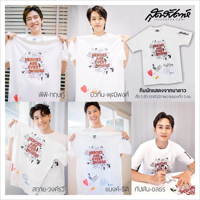 ปั๊บ พัฒน์ชัย “ปีนี้เรามาในคอนเซ็ป HEROES ARE EVERYWHERE ครับ เนื่องจากสถานการณ์ในปีนี้ การจัดงานแบบลงพื้นที่คงต้องงดกันไปก่อน แต่ที่เหมือนเดิมทุกปีคือการขายเสื้อครับ ผมก็ได้เป็นส่วนหนึ่งในการส่งต่อกำลังใจให้พี่ๆ บุคลากรทางการแพทย์และฮีโร่ทุกคนผ่านเสื้อพร้อมลายเซ็นของผม เพื่อนำมาประมูลเสื้อ นำรายได้มาสนับสนุนการปฏิบัติงานของบุคลากรทางการแพทย์ ขอเป็นกำลังใจให้ทุกคนด้วยนะครับ”