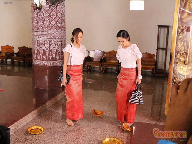 ฉากนี้ ถ่ายทำกันที่ วัดพุทไธศวรรย์ พระอารามหลวง จ.พระนครศรีอยุธยา วันนี้ต้องเป็นซีนที่สาวๆ ต้องมาทะเลาะเสียงดังกันในวัด บริเวณข้างในโบสถ์ ถึงเวลา ผู้กำกับ “ปกรณ์ โรจนานันท์” เรียกสาวๆ มาหน้าเซ็ท ซ้อมคิว ทุกคนมาในชุดเสื้อลูกไม้สีขาว ตัดกับผ้าซิ่นสีแดงฉูดฉาด เรียกได้ว่างามอย่างหญิงไทยแท้ แต่ผ้าซิ่นทรงแคบเป็นอุปสรรคสุดๆ โดยเฉพาะ ยีนส์และฝ้าย ที่ต้องถกกระโปรงยกขาถีบ น้ำตาลและเมริซ่า แต่ยังไม่ทันไร ผ้าซิ่นแสนงามของยีนส์ ก็ขาดแหวกถึงขา ทำเอาทั้งขำ ทั้งอาย เลยเปลี่ยนเป็นกระทุ้งศอกใส่ท้องแทน พอซ้อมกันจนเป๊ะ ก่อนถ่ายทำจริง เมริซ่า น้ำตาล ยีนส์ และฝ้าย จัดดอกไม้ธูปเทียน มายกมือขอขมาต่อสถานที่กันยกใหญ่ ถ่ายจริง น้ำตาลประกบยีนส์ เมริสซ่าประกบฝ้าย กอดรัดฟัดเหวี่ยงกันชุลมุน ได้คิวปุ๊บยีนส์จัดให้สมใจ กระทุ้งศอกใส่น้ำตาล ลงไปนอนตัวงอ ด้านฝ้ายก็จิกหัวเมริสซ่าเหวี่ยงก้นกระแทกพื้น ว่าแต่…ยีนส์ ฝ้าย จะกู้สถานการณ์พลิกกลับมาได้หรือไม่ ติดตามฉากนี้ได้ วันพฤหัสบดีที่ 11 กุมภาพันธ์ 2559 เวลา 08.00/13.30/20.05 น. ทางสถานีโทรทัศน์ ช่อง 8 กดเลข 27