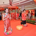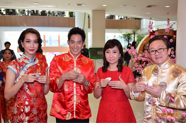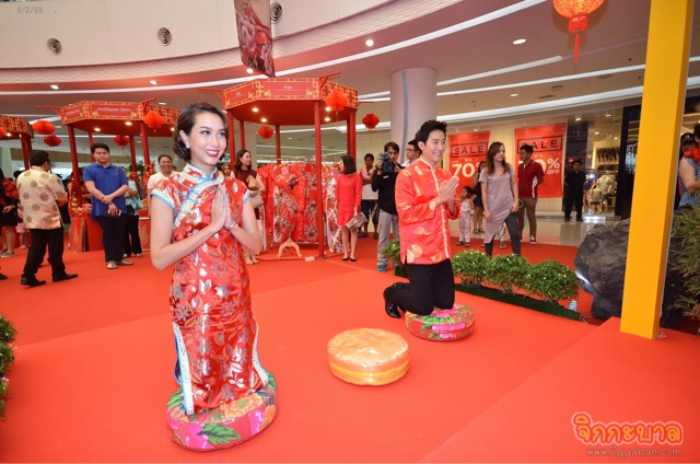 จุดประทัดเปิดงานกันอย่างคึกคักรับปีลิง ด้วยการแสดง ‘กลองรำพัด 9 ตัว’ และ ‘สิงโตอวยพร 9 สี 9 มหามงคล’ ในบรรยากาศที่เต็มไปด้วยกลิ่นอายของวัฒนธรรมแดนมังกร ซึ่งบอสใหญ่พาราไดซ์ พาร์ค “คุณอารยา จิตตโรภาส” จัดมาเป็นพิเศษ เพื่อให้ฉลองตรุษจีนกันอย่าง ‘มงคล โชคดี ร่ำรวย รุ่งเรือง’ ก่อนที่คู่รักนักบุญ “เอก-จิรัฏฐ์” และ “โบ-ธัญญะสุภางค์” จะออกมาร่วมในพิธีอัญเชิญเครื่องสักการะองค์เทพเจ้า และร่วมเสิร์ฟชาให้แก่ผู้บริหาร เพื่อให้เริ่มต้นปีใหม่กันแบบเฮงๆ ตามความเชื่อของประเพณีจีนโบราณ พร้อมทั้งอวยพรให้พี่น้องชาวไทย เชื้อสายจีน ซินเจียยู่อี่ ซินนี้ฮวดไช้!! เสร็จแล้วไม่รอช้า “เอก” และ “โบ” ขอไปเสริมสิริมงคลให้ตัวเอง ด้วยการจูงมือกันไปร่วมสักการะ เทพเจ้าไท่ส่วยเอี๊ย หรือ เทพเจ้าผู้คุ้มครองดวงชะตาประจำปี 2559 ที่เชื่อกันว่าจะช่วยคุ้มครองให้พ้นเคราะห์ภัย และ องค์ไฉ่ซิ่งเอี๊ย หรือ เทพเจ้าแห่งโชคลาภ สัญลักษณ์แห่งการค้าขาย ความร่ำรวย เงินทอง รวมทั้ง ‘4 พุทธคีรีศักดิ์สิทธิ์แห่งแผ่นดินจีน’ ที่ชาวพุทธในจีนเชื่อว่าครั้งหนึ่งในชีวิตต้องเดินทางไปสักการะให้ครบ เพื่อความสุขสมบูรณ์ในชีวิตที่แท้จริง โดย ‘พาราไดซ์ พาร์ค’ ได้อัญเชิญมาไว้อย่างครบครันในงานนี้ แบบไม่ต้องเดินทางไปสักการะถึงแดนมังกร งานนี้เลยได้เห็นทั้งคู่อธิษฐานกันยาวเหยียด เพื่อให้โชคดี มั่งมีศรีสุข งานล้น เงินทะลัก รักดี ตลอดปีวอกมงคล
