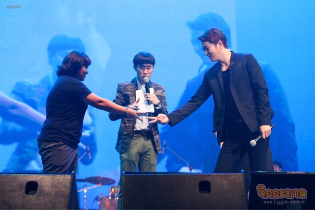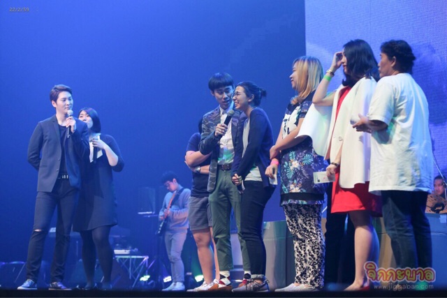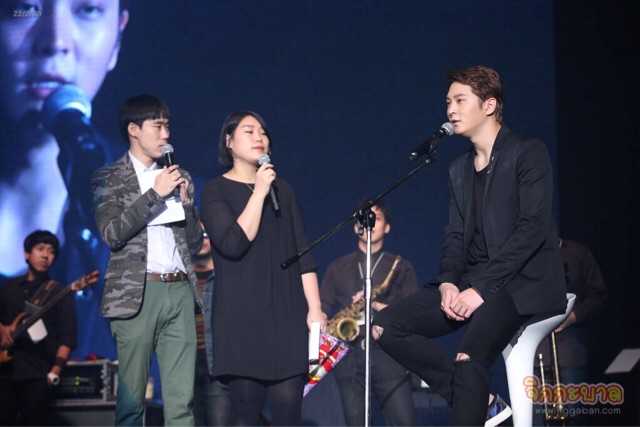 ก่อนจะซึ้งกันต่อเนื่องกับโปรเจ็คท์ที่แฟนคลับชาวไทยตั้งใจมอบให้ จูวอน โดยเล่าผ่านภาพการทำงานและข้อความแทนความรู้สึกห่วงใย “อย่าลืมที่จะมีความสุข อย่าลืมที่จะยิ้ม” ทันทีที่ภาพบนจอดับวูบลง จูวอนหันมาหาแฟนคลับที่พร้อมใจกันชูป้าย “กลับมานะ…เราจะรอ” ซึ่งมีตัวอักษรทั้งภาษาไทย อังกฤษ และเกาหลี น้ำตาลูกผู้ชายที่ไม่ได้ไหลกันง่ายๆก็พรั่งพรู จูวอนกล่าวชื่นชมทั้งน้ำตา “ปกติผมไม่ใช่คนร้องไห้เก่งขนาดนี้นะ แต่ผมประทับใจมากเวลาแฟนๆทำอะไรแบบนี้ให้ เลือกเพลงได้ดีมาก เขียนได้ดีมาก แฟนคลับของผมเก่งมากๆเลยครับ” และนี่เป็นครั้งแรกที่ทั้งศิลปิน พิธีกร และล่าม พากันร้องไห้ด้วยความประทับใจ จนจูวอนตัดพ้อว่า “เขียนว่าอย่าร้องไห้ แต่ทุกคนนั่นแหละทำให้ผมร้องไห้” พิธีกรจึงปลอบใจ จนจูวอนถึงกับเอ่ยชวน “งั้นเราไปนั่งที่เย็นๆที่มีแอร์กัน!” (ยังติดใจมุกแอร์ฟรีของพิธีกรไม่หายสินะ)