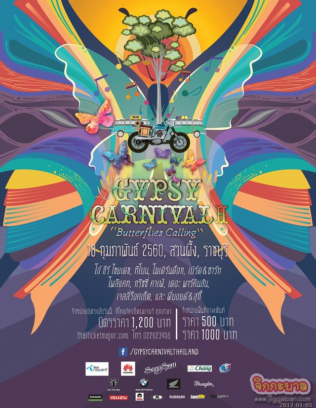 ร่วมเป็นหนึ่งในการผสมผสานที่ลงตัวระหว่างดนตรี-ไลฟ์สไตล์ และธรรมชาติ ที่เหมาะกับทุกคนในครอบครัว เพื่อปลดปล่อยวิญญาณเสรีและชีวิตอิสระ ไปกับ “ยิปซี คาร์นิวัล 2: บัตเตอร์ฟลายส์ คอลลิงก์” ได้ในวันที่ 18 กุมภาพันธ์ 2560 ที่ต้นผึ้งฟาร์ม อำเภอสวนผึ้ง จังหวัดราชบุรี
