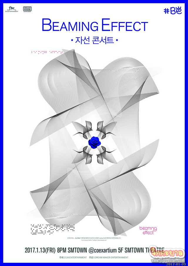 โครงการ “Beaming Effect” มีขึ้นตั้งแต่ปี 2014 เป็นต้นมา และจัดขึ้นอย่างต่อเนื่องทุกปี ถือเป็นกิจกรรมทางการกุศลที่จัดขึ้นเพื่อประชาสัมพันธ์เกี่ยวกับโรคทางสายตาที่รักษายาก ชื่อว่า Retinitis Pigmentosa (โรคตาบอดในตอนกลางคืน) รวมถึงการมีส่วนร่วมในการพัฒนาวิธีการรักษาด้วย โดยกิจกรรม “Beaming Effect” ครั้งล่าสุดนี้ จะนำกำไรทั้งหมดที่ได้จากการจัดงาน รวมถึงยอดบริจาคทั้งหมดที่ได้เปิดให้บริจาคผ่าน Story Funding ของ Kakao (https://storyfunding.daum.net/project/12131) ตั้งแต่วันที่ 20 ธ.ค. 59 ที่ผ่านมา ไปบริจาคให้กับแคมเปญเพื่อผู้พิการทางสายตา