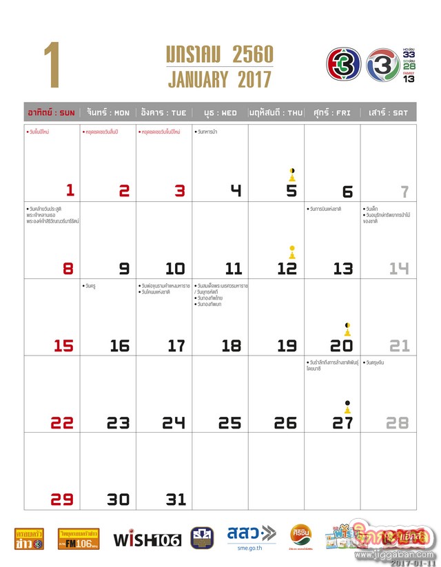 ***นอกจากนี้สำหรับชาวจังหวัดราชบุรี ในวันศุกร์ที่ 13 มกราคมนี้ ท่านยังสามารถไปรับปฏิทินข่าว 2560 นี้ได้ ฟรี! ณ สนามหน้าสำนักงานเทศบาลตำบลเบิกไพร อ.บ้านโป่ง จ.ราชบุรี ใน ช่อง 3 Power Team Concert ตั้งแต่เวลา 17.00 น. เป็นต้นไป
