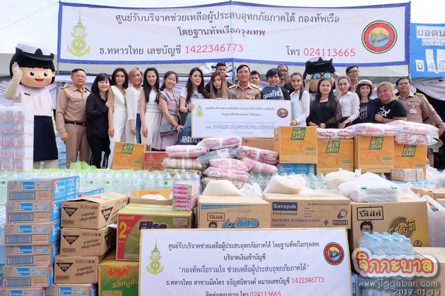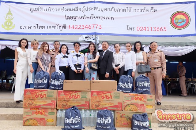 โดยมีศิลปินดาราเข้าร่วมมอบของบริจาคได้แก่ ชายแฮ็คส์ สุทธา ผู้บริหารไอพีเอ็มโปรดักชั่น, เซน นพฤทธิ์ นักแสดงจากละคร “มือเหนือเมฆ” ช่อง 7, เมเปิ้ล พัชชุดาญ์ มิสแมกซิม2009, จูน วรัญรดา มิสแมกซิม2013, กระต่าย ทรรศิกา มิสแมกซิม2013, อัยยา ทิพชาติ สาวแมกซิม2010, นุ่น พชรมนต์ พิธีกรรายการ กินอย่างยักษ์ ช่องไบร์ททีวี, ทอฝัน ไอณัฐชา ดารานักแสดงพิธีกร, น้องสปาย จากละครทศชาติชาดก “พระมหาชนก”, แก้วมณี ผู้จัดการนักแสดง ร่วมด้วย ดร.มดแดง Moddang Kongkaew โดยมี พลเรือตรี วสินสรรพ์ จันทรวรินทร์ ผบ.ฐานทัพเรือกรุงเทพ หัวหน้าหน่วยรับบริจาค เป็นผู้รับมอบ พร้อมด้วย นาวาโทยุทธเศรษฐ วังกานนท์ จากกองประชาสัมพันธ์ สำนักงานเลขานุการกองทัพเรือ รวมทั้งช่วยแพ๊คสิ่งของบริจาค เพื่อนำไปให้พี่น้องชาวใต้ด้วย ณ ฐานทัพเรือกรุงเทพ ถนนอิสรภาพ ขออนุโมทนาบุญกับทุกท่านด้วยค่ะ!!!
