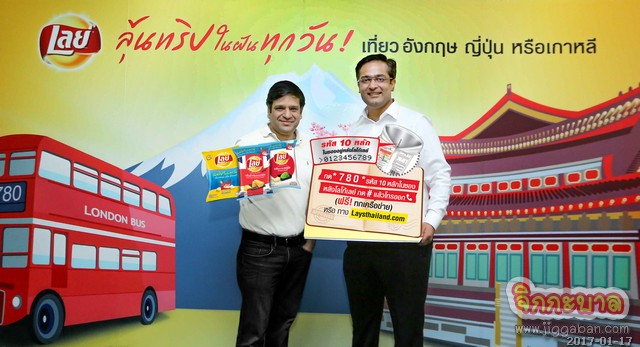 โดยแคมเปญนี้ เลย์ได้เตรียมของรางวัลสุดยิ่งใหญ่เพื่อมอบให้กับผู้โชคดีโดยมีไฮไลท์สำคัญอยู่ที่การแจกทริปสุดเอ็กซ์คลูซีฟทุกวัน!!!สู่ 3 ดินแดนท่องเที่ยวในฝัน ทั้งเยี่ยมชมมหานครแห่งสีสัน พิพิธภัณฑ์ และงานศิลปะที่ลอนดอนณ ประเทศอังกฤษ จำนวน15 รางวัล สัมผัสดินแดนอาทิตย์อุทัย ชมความงามของภูเขาไฟฟูจิณ ประเทศญี่ปุ่น จำนวน 15 รางวัล และบินลัดฟ้า ชมพระราชวัง ตะลอนเมืองกิมจิ ณ ประเทศเกาหลี15 รางวัล รางวัลละ 2 ที่นั่งและกล้อง GoPro Hero+LCDที่มีหน้าจอ LCD แบบสัมผัส สามารถเชื่อมต่อไร้สายผ่าน WiFiและ Bluetooth เพื่อใช้งานร่วมกับแอพและอุปกรณ์ควบคุมมูลค่า 10,999 บาท จำนวน 200 รางวัล กระเป๋าเป้เดินทางรุ่นลิมิเต็ดจากเลย์และรางวัลอื่นๆ อีกมากมายกว่า10,000 รางวัล มูลค่ารวมกว่า 9 ล้านบาทเริ่มแจกตั้งแต่วันที่6 มกราคม -10 มีนาคม 2560