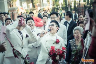 ซึ่งกว่าจะผ่านด่านต่างๆ ทั้งเพือนเจ้าสาวและญาติๆ เจ้าสาวก็ใช้เวลาไปกว่าหนึ่งชั่วโมง