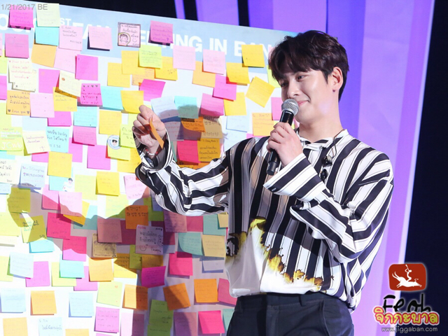 มาถึงอีกหนึ่งบทเพลงที่เขาตั้งใจเตรียมมาอย่างดีเพื่อมอบให้กับแฟนๆ ชาวไทย ซึ่งก็คือเพลง ‘Even though I loved you’ จากละครเวที The Day ด้วยน้ำเสียงทรงพลังและความสามารถในการร้องเพลงที่จัดได้ว่าไม่แพ้นักร้องมืออาชีพเลยทีเดียว ก็สะกดทุกคนอยู่หมัด สัมผัสได้ถึงความรู้สึกที่เขาตั้งใจส่งมาเต็มๆ จากนั้นเข้าสู่ช่วง Q&A ที่ อุคจ๋า เลือกกระดาษโน้ต (Post-it Notes) ที่แฟนๆ เขียนฝากคำถามกันไว้ในช่วงก่อนเริ่มงาน ณ จุดนี้ผู้โชคดีเจ้าของคำถามก็จะได้ขึ้นเวทีไปถามอุคจ๋าด้วยตัวเองแบบใกล้ๆ แถมพ่อเจ้าประคุณก็ใจดีให้เซลฟี่อีกด้วย และหากถามว่ากอดได้มั้ย? อุคจ๋าก็อ้าแขนรอเลยจ้า โดยหนึ่งในคำถามเด็ดก็คือ “อุคจ๋าจะมีแฟนและแต่งงานเมื่อไหร่?” คำตอบจาก จีชางอุค คือ “สำหรับแฟนเนี่ย อันที่จริงก็อยากมีนะครับ อยากมีความรักแล้วก็ออกเดทบ้างครับ ส่วนเรื่องแต่งงานผมยังไม่ได้คิดเลยเพราะขอรับใช้ชาติก่อนครับ แต่หลังออกจากกรมฯ ผมคงจะคิดเรื่องนี้อีกทีครับ” ตอบมาขนาดนี้..แฟนๆ ก็กรี๊ดสิจะรออะไร!!