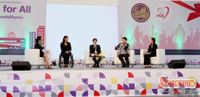 ด้านนายสนิท พรหมวงษ์ อธิบดีกรมการขนส่งทางบก กล่าวว่า การจัดงานในวันนี้ มีวัตถุประสงค์เพื่อสร้างการรับรู้และความเข้าใจให้ประชาชนตระหนักถึงผลกระทบจากการเกิดอุบัติเหตุบนท้องถนน เพื่อเป็นการเตือนสติให้ทุกคนใส่ใจในการขับขี่ที่ปลอดภัย โดยที่ผ่านมาตั้งแต่ปีงบประมาณ พ.ศ. 2552 จนถึงปัจจุบัน กรมการขนส่งทางบก ให้ความช่วยเหลือผู้พิการที่ประสบภัยทางถนนไปแล้ว 13,833 ราย เป็นเงิน 658,446,301 บาท และในปีนี้ได้มอบอุปกรณ์เพื่อช่วยเหลือผู้พิการทั่วประเทศ จำนวน 1,653 ราย โดยเป็นผู้ได้รับจัดสรรในส่วนกลาง จำนวน 98 ราย ได้แก่ รถนั่งไฟฟ้า จำนวน 7 คัน รถนั่งธรรมดา จำนวน 33 คัน ขาเทียม จำนวน 55 ขา และอุปกรณ์อื่นๆ จำนวนมาก นอกจากการจัดพิธีมอบอุปกรณ์ดังกล่าวแล้ว ภายในงานยังมีการจัดนิทรรศการ “เดินตามรอยเท้าพ่อ” เพื่อรวบรวมพระราชกรณียกิจ และพระราชดำรัส ของในหลวงรัชกาลที่ 9 ที่เกี่ยวข้องกับผู้พิการ พร้อมทั้งจัดเสวนาเกี่ยวกับ“อุบัติเหตุ ภัยใกล้ตัว แต่จะไม่ถึงตัว ถ้าทุกคนรักษ์ความปลอดภัย” ผ่านมุมมองและประสบการณ์ของผู้มีประสบการณ์ด้านการจัดการความปลอดภัยฯ ผู้พิการจากการใช้รถใช้ถนน และผู้ประมูลหมายเลขทะเบียนรถ เพื่อเป็นการรณรงค์กระตุ้นเตือน และสร้างความตระหนักถึงผลกระทบของอุบัติเหตุที่เกิดขึ้นให้เห็นถึงความปลอดภัยในการใช้รถใช้ถนนมากขึ้นด้วย