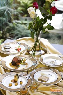 5 คอร์สสุดพิเศษ อาทิ Amuse Bouche เยลลี่ คอนซอมเม่ รสชาติให้ความสดชื่น Foie Gras and Black Truffle Mille-Feuille , Pear Purée ตับห่านฝรั่งเศสจัดเรียงเป็นชั้นสลับกับ Black Truffle จากเมือง Perigueux เสิร์ฟคู่กับซอสลูกแพรเชื่อม, Seared Hokkaido Scallop with Black Truffle หอยเชลล์จากฮอกไกโดย่าง, Black Truffle Ravioli with Emulsified Truffle Sauce ราวิโอลีสอดไส้ด้วยครีมเห็ดและแบล็คทรัฟเฟิล, Dover Sole Meunière, Truffle Lemon Sauce ปลาเนื้อขาวละเอียดย่างเนยด้วยเทคนิคแบบฝรั่งเศส เสิร์ฟคู่กับซอสมะนาวผสมทรัฟเฟิล, Roasted Iberico Lamb with Truffle Crust เนื้อลูกแกะเนื้อนุ่มนำเข้าจากสเปนเคลือบด้วยเห็ดทรัฟเฟิลและ Chocolate Fondant & Truffle Ice-Cream ฟองดองช็อกโกแลตเสิร์ฟคู่กับทรัฟเฟิลวนิลาไอศครีมสูตรลับเฉพาะ