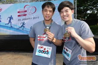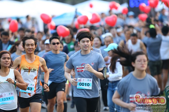 คึกคักกันตั้งแต่เช้ามืด เมื่อบอสหนุ่ม พิจิตต์ วิริยะเมตตากุล แห่งโรงพยาบาลวิภาวดี นำทีมชาวรันเนอร์วอร์มอัพร่างกาย และร่วมร้องเพลง ‘ขอเป็นข้ารองบาททุกชาติไป’ ก่อนปล่อยตัวนักวิ่งมินิมาราธอนระยะทาง 12 กิโลเมตร และประเภทฟันรัน ระยะทาง 3 กิโลเมตร ได้วิ่งรอบสวนสาธารณะจตุจักรในบรรยากาศที่ร่มรื่นและอากาศเย็นสบาย งานนี้หนุ่มบีม-กวี ฟิตร่างกายมาอย่างเต็มที่ ลงวิ่งในระยะ 12 กิโลเมตร ทำเวลาได้ 1 ชั่วโมง 30 นาที แถมมีหวานใจตัวจริงมาส่งเสียงเชียร์ให้กำลังใจตลอดเส้นทางอีก อิจฉาวนไปค่ะ!! “ครั้งแรกเลยครับที่ลงวิ่งแบบนี้ ตอนแรกกะจะวิ่งแค่ 10 กิโลเมตรพอ แต่วิ่งเพลินๆ ก็ครบรอบจนได้ เหนื่อยครับ แต่ก็ช่วยทำให้เลือดได้สูบฉีด หัวใจได้ทำงาน แถมวิ่งครั้งนี้ยังได้ร่วมบริจาคเงินให้กับมูลนิธิหัวใจแห่งประเทศไทยฯ อีกด้วย อิ่มบุญกันถ้วนหน้าเลยครับ” ส่วนอีกหนึ่งหนุ่ม บีม-ศรัณยู ประชากฤช ขอเปลี่ยนแนวจากกีฬาเอ็กซ์ตรีมมาลองวิ่งเบาๆ 3 กิโลเมตร ทำเวลาได้ 18 นาที “ดีมากเลยครับ ได้มาวิ่งในสวนใจกลางเมืองแบบนี้ อากาศก็ดี หัวใจก็ดีด้วย อยากชวนทุกคนมาออกกำลังกายกันเยอะๆ ตามที่ตัวเองชอบ เพื่อให้ร่างกายและหัวใจแข็งแรงครับ”