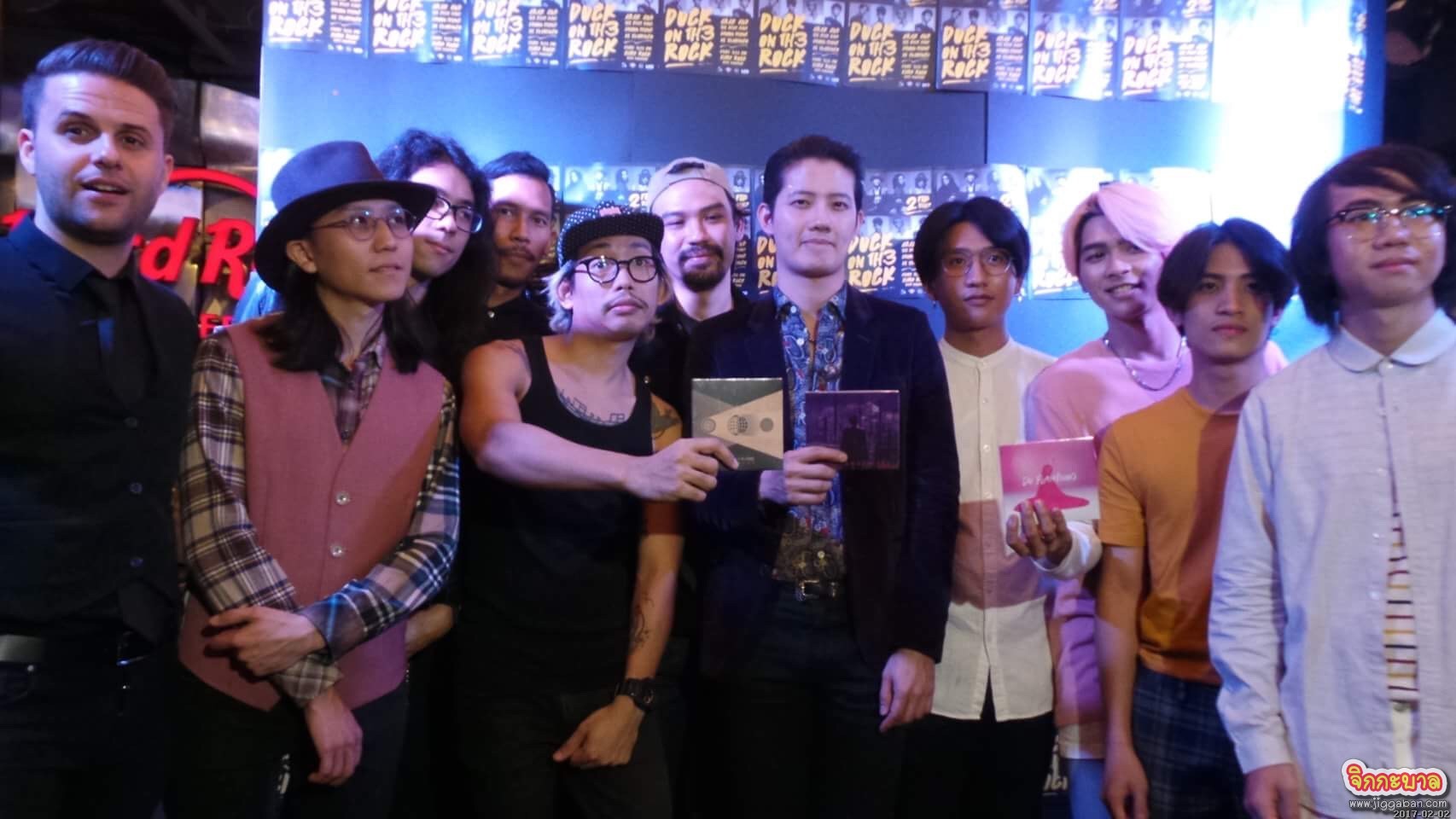DUCK ON THE ROCK @ Hard Rock cafe งานแถลงข่าวเปิดอัลบัมของ 3 ศิลปิน ROCK จากค่าย What The Duck นำทีมเปิดมินิคอนเสิร์ตสุดมันส์จาก ARAK AND THE PISAT BAND, BROWN FLYING, DE FLAMINGO กับเพลงที่ยังไม่เคยเล่นที่ไหนมาก่อน ของทั้ง 3 วง พร้อมการเปิดขายอัลบั้มเป็นครั้งแรก เมื่อวันพฤหัสบดี ที่ 2 กุมภาพันธ์ 2560 เวลา 14.00น. @ Hard Rock Cafe Bangkok (Siam Square Soi 11)