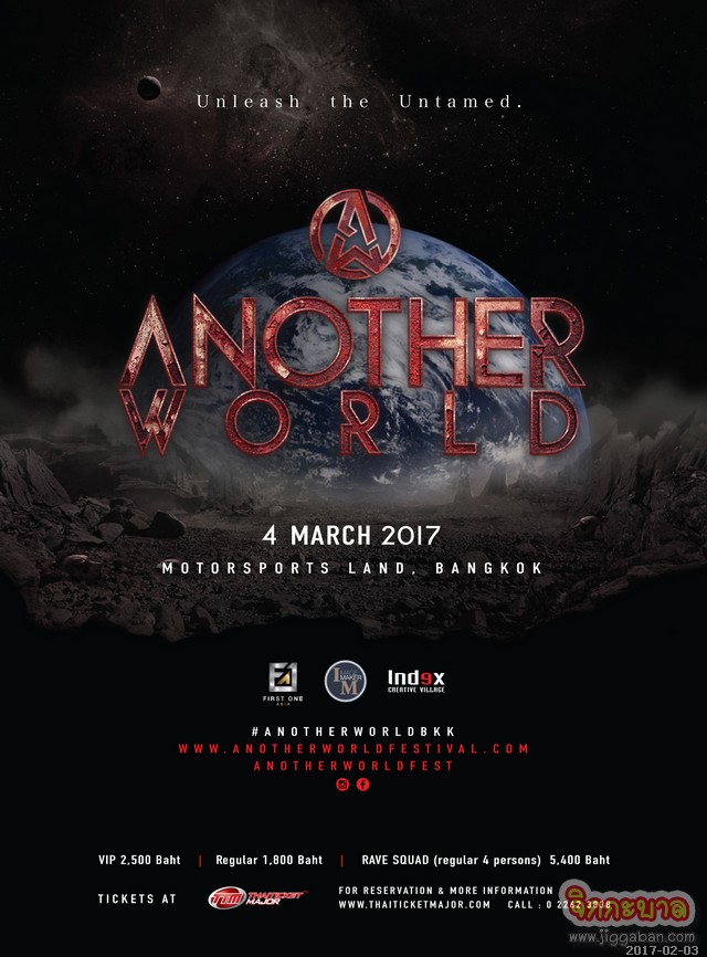ที่สุดแห่งประสบการณ์งานดนตรีอิเล็กซ์ทรอนิกส์ยุคใหม่‘อนาเธอร์เวิล์ด’ (AnotherWorld)อีดีเอ็ม มิวสิค เฟสติวัล’ (EDM Music Festival) ในรูปแบบ ฮาร์ด สไตล์ อีดีเอ็ม (Hard Style EDM) โดย อินเด็กซ์ ครีเอทีฟ วิลเลจฉีกกฎทุกงานดนตรีที่เคยมีมาผสมผสานความสนุกที่ไม่ใช่แค่เรื่องของดนตรีหรือแนวเพลง แต่รวบรวมที่สุดของความมันส์และความบันเทิงด้านไลฟ์สไตล์ ศิลปะ แฟชั่น ดนตรีและการเต้นรำอย่างสนุกสนานแบบงานเฟสติวัลไว้ในหนึ่งเดียวเป็นครั้งแรกในประเทศไทยรวมถึงไฮไลท์เด็ดของงานที่อิมพอร์ตเหล่ากองทัพดีเจชื่อดังจากทั่วโลก ตบเท้ามาร่วมสร้างปรากฏการณ์ความมันส์ อาทิ Coone, Noisecontrollers, Zatox, Code Black, Mightyfoolsและ MC DLการันตีการสร้างประสบการณ์ครั้งใหม่ให้กับแฟนอีดีเอ็มในรูปแบบที่ไม่เคยมีมาก่อน ผ่านการสร้างสรรค์โปรดักชั่นระดับมืออาชีพ ทั้งแสง สี เสียง สุดยิ่งใหญ่ตระการตา ที่จะมาเขย่าทุกโสตประสาทให้คึกคักขึ้นอีกครั้ง เตรียมตัวให้พร้อม ปลดปล่อยทุกตัวตน แล้วร่วมกระโดดให้สุดพลัง ในงาน ‘อนาเธอร์เวิล์ด’(AnotherWorld)ในวันเสาร์ที่ 4 มีนาคมนี้ ที่ มอเตอร์ สปอร์ต แลนด์ (Motor Sports Land), (แดนเนรมิตร เก่า)จำหน่ายบัตรแล้วตั้งแต่วันนี้ ที่ไทยทิกเก็ตเมเจอร์ทุกสาขา สอบถามข้อมูลเพิ่มเติม 02-262-3838 หรือ AnotherWorldFestival.comแฟนๆ อีดีเอ็ม ห้ามพลาด!