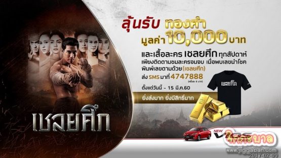เตรียมลุ้นรับทองคำ มูลค่า 10,000 บาท และเสื้อละครเชลยศึกทุกสัปดาห์ เพียงติดตามชมละคร “เชลยศึก” ทางช่อง 8 จนจบ เมื่อพบเลขนำโชค พิมพ์เลขตามด้วย (เชลยศึก) ส่ง SMS มาที่ 4747888 (ครั้งละ 6 บาท) ตั้งแต่วันนี้ – 15 มี.ค.60 สนับสนุนโดย VIOS ALL IS POSSIBLE (วีออส ออล อีส พอสสิเบิ้ล) ยิ่งส่งมาก ยิ่งมีสิทธิ์มาก