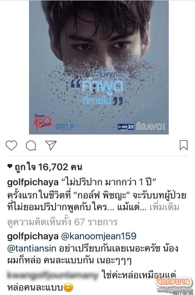 กลายเป็นเรื่อง ทอล์คอ๊อฟเดอะทาวน์ ในเหล่าโซเชี่ยลเมื่อหนุ่ม กอล์ฟ-พิชญะ เอาคลิปภาพที่แสดงบท พูดไม่ได้ หมดหล่อ โทรมสุดครั้งแรกในซีรีส์ “ไม่เคย ตอน คำพูดที่หายไป” ให้กับค่าย #Gmmbravo มาโพสอ้อนแฟนสาว ขวัญ-อุษามณี ว่า “เค้าหมดสภาพ ยังร้ากกเค๊าไม๊”…เล่นเอาเหล่าแฟนคลับจิกหมอนคอมเม้นท์เชียร์คู่ขวัญคู่นี้กันล้นไอจีกอล์ฟ แถมดาร์ลิ้งสาวขวัญตอบทันควัน “ตลอดไปเลย..ไม่ร้องนะ” ทำให้กระแสภาพและคลิปต่างๆจากละครเรื่องนี้ที่กอล์ฟปล่อยออกมาแต่ละครั้งมียอดวิวท่วมท้นในทุกคลิปและทุกภาพ จนแฟนทั้งไทยและเทศต่างฟันธงเป็นเสียงเดียวกันจะเฝ้าจอรอชมเรื่องนี้ที่มีกำหนดออนแอร์ตอนแรก พฤหัสที่ 9 ก.พ.นี้ 3 ทุ่มครึ่ง ช่อง gmm25 กันใหญ่ …. งานนี้มีแรงเชียร์ทั้งจากแฟนคลับและแฟนตัวจริงขนาดนี้ เตรียมตั้งตารอน้ำตาซึมจากซีรีส์ “คำพูดที่หายไป” ผลงานใหม่จากฝีมือของกอล์ฟที่ทุ่มเทหมดหน้าตักในการแสดงกันได้เลย
