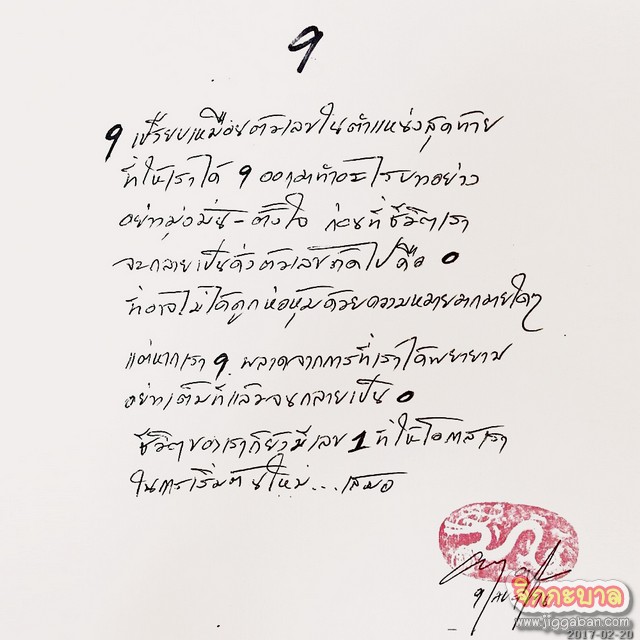 “เมื่อวันที่ 9 เดือน 9 ปีที่แล้ว เราได้นัดทางทีมของแสงโสมเพื่อส่งเพลงและConceptของการทำเพลงโปรเจคนี้ ซึ่งเราก็เขียนลงบนกระดาษในรูปแบบจดหมาย โดยเราแจกให้กับบางส่วนของทีมในวันนั้น โจทย์ของเราคือการพูดเกี่ยวกับการ 9’ก้าว’ ออกมาทําอะไรบางอย่างๆมุ่งมั่น-ตั้งใจ ซึ่งภายในจดหมายมีใจความหลักสำหรับเพลง 9 ประมาณนี้ 9″เปรียบเหมือนตัวเลขในตําแหน่งสุดท้ายที่ให้เรา9 ออกมาทําอะไรบางอย่าง อย่างมุ่งมั่น-ตั้งใจ ก่อนที่ชีวิตเราจะกลายเป็น 0 ที่อาจไม่ถูกห่อหุ้มด้วยความหมายมากมายใดๆ แต่หากเรา 9 ก้าว พลาดจากการที่เราได้พยายามอย่างเต็มที่แล้วจนกลายเป็น 0 ชีวิตของเราก็ยังมีเลข 1 ที่ยังให้โอกาสเราในการเริ่มต้นใหม่…เสมอ”