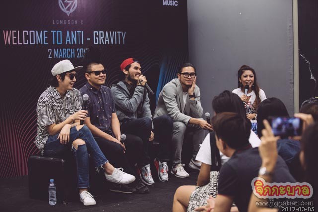 โดยบอยนักร้องนำพูดถึงความตั้งใจของพวกเขา“วงดนตรีหลายวงมักถูกจำกัดด้วยแนวเพลงหรือช่วงเวลาแต่จะมีวงดนตรีอีกหลายวงที่อยู่เหนือกาลเวลาผมอยากให้ Lomosonicเป็นแบบนั้นเสียงร้องแบบนี้เสียงดนตรีแบบนี้มันคือตัวเราฟังแล้วคิดถึงการไม่ย่ำอยู่กับที่” มาต่อกันที่คอนเซ็ปท์ของอัลบั้มที่ปิติมือกีต้าร์ได้พูดถึงที่มา“มนุษย์เราเกิดมาใช้ชีวิตประจำวันมันคือการต้านแรงโน้มถ่วงอยู่แล้วการเดินการกระโดดระหว่างที่เราทำอัลบั้มนี้เราก็คิดถึงคำว่า Anti-Gravity (แอนไทกราวิตี้) ขึ้นมา”ด้านออตโต้มือกลองก็ได้กล่าวเสริมว่า“กว่าที่อัลบั้มจะเสร็จสมบูรณ์ต้องฝ่าฟันกับอุปสรรคมากมายสมกับชื่อ Anti-Gravityจริงๆ”และก็ถึงช่วงเวลาที่รอคอยที่ทางวงได้เตรียมมิวสิกวิดีโอใหม่ล่าสุดมาให้ได้ชมกันด้วยป้อมมือกีต้าร์ของวงได้อธิบายถึงมิวสิกวิดีโอไตรภาค(Trilogy)ที่เกิดจากความอยากทำอะไรให้มันหลุดออกไปจากกรอบเดิมๆก็เลยนำบรรยากาศของโลกอนาคตมาใช้ทั้งหมดมี 3 mvเรื่องราวต่อเนื่องกันในแต่ละตอนจะมีtrailerคั่นเพื่อเป็นการเชื่อมต่อเรื่องราว“ข้อแนะนำควรชมต่อเนื่องกันเพื่อความเข้าใจที่สมบูรณ์” ป้อมได้กล่าวย้ำถึงการชมมิวสิกวิดีโอนี้ก่อนปฐมทัศน์ให้แฟนๆภายในงานได้ชมกันเป็นกลุ่มแรกก่อนโลกโซเชี่ยลสร้างความฮือฮาและเสียงปรบมือเรียกร้องให้เปิดตอนที่2 ต่อเลยทีเดียว