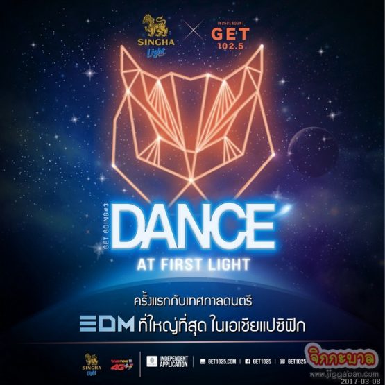 สายตื๊ด…สายแดนซ์ เตรียมตัวกันให้ดีดี คลื่นเพลงสากล “GET 102.5” จับมือ “Singha Light” จัดกิจกรรม “GET GOING 3 : DANCE AT FIRST LIGHT” พาผู้โชคดีบินลัดฟ้าไปแดนซ์ไกลถึงประเทศญี่ปุ่น ตั้งแต่วันที่ 26 เมษายน ถึง 1 พฤษภาคม 2560 งานนี้การันตี ไม่เช้าไม่เลิก….เต้น! ร่วมสนุกได้ง่ายๆ ทาง www.facebook.com/get1025 และเพื่อ โบนัสพิเศษติดตามฟัง SPACIAL CODE ในช่วง “ดีเจ.เอ็ม”, “ดีเจ.แวซายน์” และ “ดีเจ.โก้-แบม” อย่าให้พลาดแม้แต่วินาที สามารถเล่นเกมส์ได้จนถึง 31 มีนาคม ประกาศรายชื่อผู้มีสิทธิ์สัมภาษณ์ 20 ท่าน วันที่ 3 เมษายนนี้