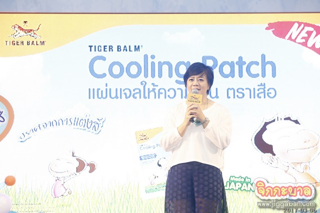 ภญ.อนินทยา สุนสะธรรม ผู้จัดการประจำประเทศไทยและอินโด-ไชน่า บริษัท โฮ้ว ป่า ไทเกอร์ บาล์ม (ประเทศไทย) จำกัด กล่าวว่า ทางบริษัท โฮ้ว ป่า ไทเกอร์ บาล์ม (ประเทศไทย) จำกัด ผลิตภัณฑ์ส่วนใหญ่เป็นผลิตภัณฑ์ที่บรรเทาอาการปวดกล้ามเนื้อต่างๆ ซึ่งเป็นสินค้ากลุ่มประเภทคุณพ่อคุณแม่ และคนทำงาน จึงทำให้เรานึกถึงว่า เรายังขาดสินค้าประเภทลูกค้าอีกกลุ่มหนึ่ง นั้นคือสินค้ากลุ่มประเภทเด็ก ซึ่งทาง ไทเกอร์ บาล์ม เองเรามีปรัชญาที่ต้องการนำเสนอสินค้าที่ช่วยบรรเทาอาการปวด เราเลยวิเคราะห์ว่าเรามีข้อดีและจุดเด่นอะไรบ้าง ในที่สุดจากจุดแข็งของเรา เราจึงได้คิดค้นแผ่นเจลให้ความเย็นสำหรับใช้แปะเพื่อช่วยลดอุณหภูมิสำหรับเด็ก ตราเสือ โดยผ่านการศึกษาจากพฤติกรรมไลฟ์สไตล์ของคุณพ่อคุณแม่ แผ่นเจลให้ความเย็น ตราเสือ แผ่นเจลปราศจากการแต่งสีสำหรับเด็ก นับเป็นสินค้าตัวแรกในกลุ่มผลิตภัณฑ์สำหรับเด็กของไทเกอร์ บาล์ม ภายใต้แนวคิดที่ว่า “รักแท้ไม่ต้องแต่งแต้มเติมสี” วันนี้เราดีใจมากที่ได้ครอบครัวของ คุณมอส ปฏิภาณ และ คุณเกม ดวงพร มาร่วมพูดคุยและแชร์ประสบการณ์การดูแล น้องโสน สิสราญ ปฐวีกานต์ ด้วยค่ะ เรามั่นใจว่า แผ่นเจลให้ความเย็น ตราเสือ หรือ “Tiger Balm Cooling Patch” ที่ใช้แปะเพื่อช่วยลดอุณหภูมิสำหรับเด็ก จะเป็นตัวช่วยที่ดีให้กับคุณพ่อคุณแม่ยุคใหม่ทุกท่านค่ะ” ภญ.อนินทยาฯ กล่าวทิ้งท้าย