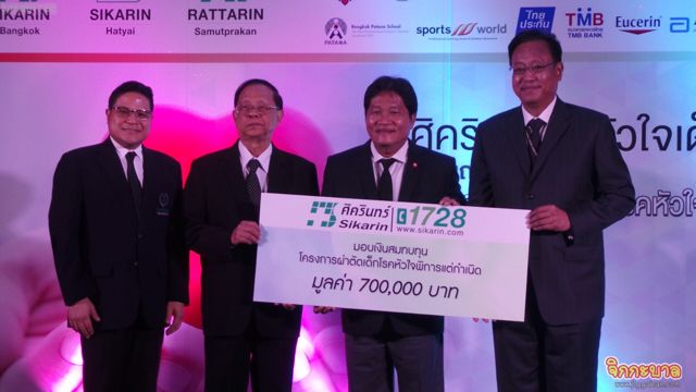 โดยโรงพยาบาลศิครินทร์ ได้จัดกิจกรรม Sikarin Mini Marathon #8 เพื่อนำเงินรายได้สมทบทุนเข้าร่วมโครงการ ผ่าตัดเด็กโรคหัวใจพิการแต่กำเนิด Sikarin Mini Marathon #8 เมื่อวันที่ 5 มีนาคม 2560 ที่ผ่านมา และในวันนี้ วันพุธที่ 15 มีนาคม 2560 เวลา 9.00น. ได้จัดพิธีมอบเงินสมทบทุน โครงการผ่าตัดเด็กโรคหัวใจพิการแต่กำเนิด เป็นเงินทั้งสิ้น 1,100,000.00 บาท (โดยแบ่งเป็น โรงพยาบาลศิครินทร์ 700,000บาท และ โรงพยาบาลศิครินทร์ หาดใหญ่ 400,000 บาท) ณ ห้องประชุม Sikarin Grand Room ชั้น 8 อาคาร 3 โรงพยาบาลศิครินทร์