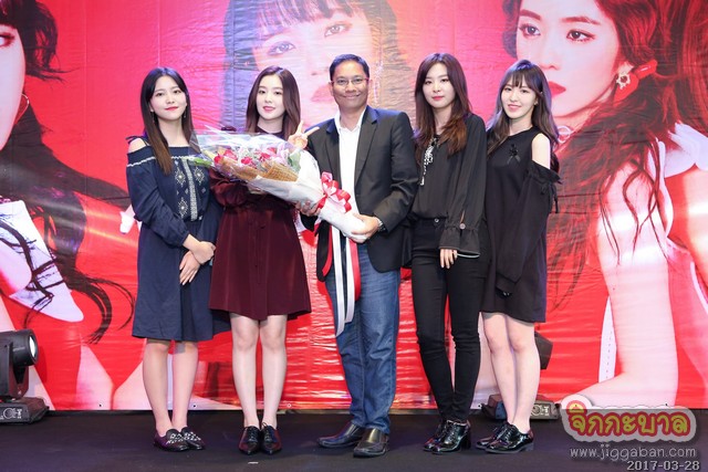 เกิร์ลกรุ๊ปสุดฮอตสัญชาติเกาหลี‘Red Velet’ (เร้ดเวลเว็ท) บินด่วนลัดฟ้าถ่ายทำเรียลลิตี้โชว์ที่ประเทศไทย ทางต้นสังกัดในประเทศไทยอย่าง SM True (เอสเอ็มทรู) จึงเสิร์ฟเซอร์ไพรส์ให้แฟนคลับชาวไทยได้ไปใกล้ชิดกับพวกเธอเป็นครั้งแรก ในกิจกรรมสุดพิเศษ ‘Red Velvet Special Fan Signing Event in Bangkok’ (‘เร้ดเวลเว็ทสเปเชียล แฟนไซน์นิ่ง อีเว้นท์ อิน แบงค็อก’)ซึ่งจัดขึ้นเมื่อวันจันทร์ที่ 27 มีนาคม 2560 ณ QUARTIER GALLERY, ชั้น Mศูนย์การค้า ดิเอ็มควอเทียร์ ซึ่งงานนี้บอกได้เลยว่า กระแสตอบรับดีเกินคาด พลังของแฟนคลับชาวไทยไม่แพ้ชาติใดในโลก ทุกคนต่างมารอให้กำลังใจสาว ๆ แบบล้นพื้นที่มากกว่า 2,000 คนเลยทีเดียว โดยในเวลาประมาณ 11.30 น. งานแถลงข่าวได้เริ่มขึ้น 4 สาว ‘Red Velvet’ ที่เดินทางมาประเทศไทยในครั้งนี้ อย่าง SEULGI (ซึลกิ), IRENE (ไอรีน), WENDY (เวนดี้) และ YERI (เยริ) ยกเว้น JOY (จอย) ซึ่งติดตารางงานที่ประเทศเกาหลี ได้ขึ้นเวทีมาทักทายแฟนชาวไทย และสื่อมวลชนอย่างเป็นทางการครั้งแรก ก่อนจะเริ่มให้สัมภาษณ์อย่างเป็นกันเองให้ทุกคนได้ทำความรู้จักกับ ‘Red Velvet’ มากขึ้น พร้อมโชว์เสน่ห์ความน่ารัก สดใส ละลายหัวใจแฟน ๆ ต่อจากนั้น ทางพิธีกรได้เรียนเชิญ คุณเทพ สินธวานนท์ รองประธานเจ้าหน้าที่บริหารสายปฏิบัติการ บริษัท เอสเอ็มทรู จำกัด และคุณมนาเทศ อันนวัฒน์ รองกรรมการผู้จัดการ ศูนย์การค้า ดิ เอ็มควอเทียร์ ขึ้นมอบช่อดอกไม้แสดงความยินดี และร่วมถ่ายรูปกับศิลปิน