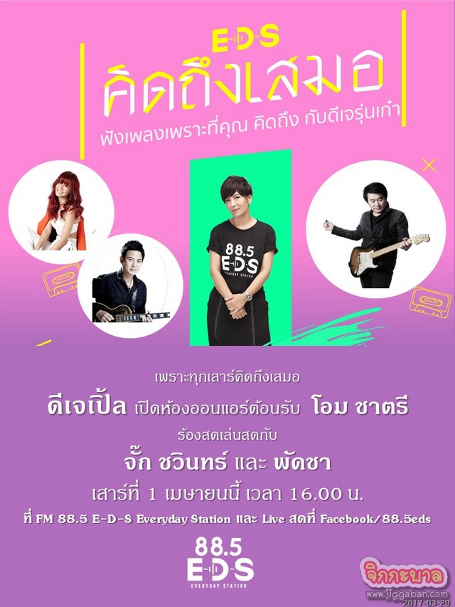 เพราะทุกเสาร์คิดถึงเสมอ ‘ดีเจเปิ้ล – หัทยา วงษ์กระจ่าง’ เตรียมเปิดห้องออนแอร์ที่คลื่น 88.5 EDS (Everyday Station) ต้อนรับโปรดิวเซอร์มือทอง โอม ชาตรี ร่วมพูดคุยถึงคอนเสิร์ต Ohm Chatree Live 2016 “Rewat Forever” ในช่วงคิดถึง พร้อมร้องสดเล่นสด ไปกับ จั๊ก ชวินทร์ และ พัดชา ในวันเสาร์ที่ 1 เมษายนนี้ เวลา 16.00 น. สเตจูนรอได้เลย คลื่น 88.5 E-D-S ฟังออนไลน์ที่ www.everydaystation.com หรือ Application 88.5