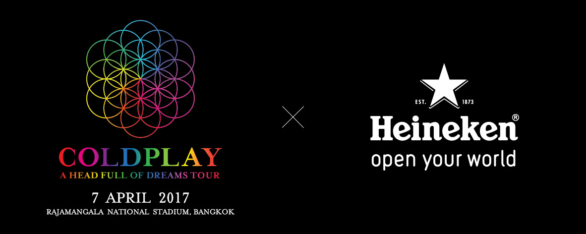 ไฮเนเก้น ในฐานะผู้สนับสนุนปรากฏการณ์ดนตรีครั้งยิ่งใหญ่ “Coldplay A Head Full Of Dreams Tour” ไฮเนเก้นจึงมุ่งมั่นคัดสรรกิจกรรมทางดนตรีรูปแบบใหม่และสร้างประสบการณ์ทางดนตรีที่ไม่เคยมีมาก่อนให้กับกลุ่มมิวสิคแฟนคนไทย กับกิจกรรม Heineken x Coldplay Word Hunt ที่จะชวนทุกคนมาร่วมสนุกเปิดประสบการณ์ทางดนตรีรูปแบบใหม่ เพื่อลุ้นเป็นหนึ่งในผู้โชคดี 4 ท่าน ที่จะได้ Meet & Greet แบบเอ็กซ์คลูซีฟสุด ๆ กับศิลปิน Coldplay ณ สนามราชมังคลากีฬาสถาน หัวหมาก วันศุกร์ที่ 7 เมษายนนี้ งานนี้สาวกไฮเนเก้นและสาวกโคลด์เพลย์ พลาดไม่ได้เด็ดขาด ติดตามรายละเอียดการดาวน์โหลดเพลย์ลิสต์ “Heineken Coldplay 2017” ได้ทางwww.facebook.com/Heineken และ instagram@heineken_th