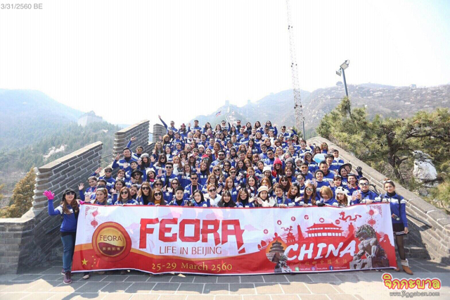 นำทีมโดย คุณปภัสรา ดิษสกุล ประธานกรรมการบริษัท ฟีโอร่า (ไทยแลนด์) จำกัด และคุณธณเมศวร์ ซังปาน ประธานที่ปรึกษาบริษัท ฟีโอร่า (ไทยแลนด์) จำกัด ซึ่งทริปปักกิ่งในครั้งนี้ ถือว่าเป็นทริปที่สองในการพาตัวแทนท่องเที่ยวต่างประเทศของปี 60 นี้ จากยอดขายกว่า500 ล้านบาทภายในระยะเวลา 2 ปี โดยคุณน้ำฟ้า ปภัสรา ได้กล่าวว่า การพาตัวแทนผู้จัดจำหน่ายเที่ยวต่างประเทศในครั้งนี้ถือเป็นการคืนกำไรให้กับตัวแทนผู้จัดจำหน่าย และยังได้ไปเยี่ยมชมประวัติศาสตร์ อย่างเช่นพระราชวัง กู้กง ( พระราชวังต้องห้าม ) พระราชวังฤดูร้อน (อวี้เหอหยวน) กราบไหว้ขอพรเพื่อสร้างแรงบันดาลใจที่ หอฟ้าเทียนถาน วัดลามะยงเหอกง และยังมีสถานที่สำคัญทางประวัติศาสตร์อีกมากมาย อาทิเช่น กำแพงเมืองจีน ด่านจวีหยงกวน ตื่นตาตื่นใจกับกายกรรมปักกิ่ง