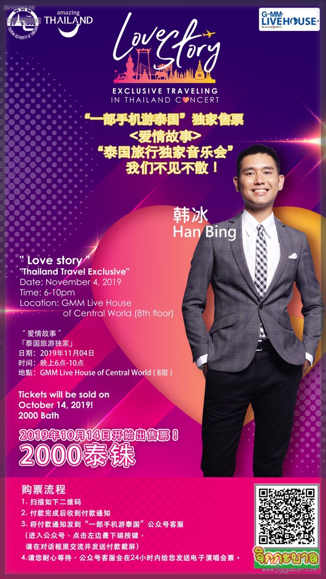 ขอเชิญแฟน ๆ ร่วมฟินไปกับ Love Story Exclusive Traveling In Thailand คอนเสิร์ตในรูปแบบมีตแอนด์กรี๊ดที่เชื่อมความสัมพันธ์ไทยและจีน และส่งเสริมอุตสาหกรรมการท่องเที่ยวให้ขยายไปในวงกว้าง ผ่านความบันเทิงหลากหลายรูปแบบ ซึ่งในงานเปิดประเดิมด้วยการมีทแอนด์กรี๊ด ศิลปินไทยที่ได้รับความนิยมจากแฟน ๆ ชาวจีนสูง อย่าง ป้อง ณวัฒน์ / เจษฎ์ พิพัฒ / ดีเจพุฒิ พุฒิชัย รวมถึง บี้ เดอะสตาร์ ที่จะมาร่วมเปิดมินิคอนเสิร์ตแบบเต็มอิ่ม และมอบความสนุกให้กับแฟน ๆ อย่างใกล้ชิดด้วยการไฮทัช / ถ่ายรูป และเล่นเกมรับของรางวัล… รับรองความฟินให้แฟน ๆ แน่นอน ซึ่ง Love Story Exclusive Traveling In Thailand จะจัดขึ้นใน วันที่ 4 พฤศจิกายน 2562 ณ Gmm Live House เวลา 18.00 – 22.00 น. จองบัตรได้เลยที่ http://go.eventpop.me/LoveStoryExeclusiveTravelingTH