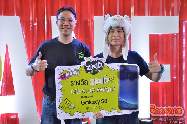 เอไอเอส ยังมอบรางวัลโทรศัพท์มือถือ Samsung Galaxy S8 ให้แก่ผู้ชนะเลิศ ZEED CREATOR AWARD การประกวดความซี้ดแบบฟรีสไตล์ผ่านคลิป 30 วินาที ณ รอยัล พารากอน ฮอลล์ ศูนย์การค้าสยามพารากอน เมื่อวันก่อน