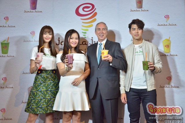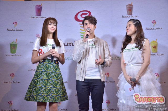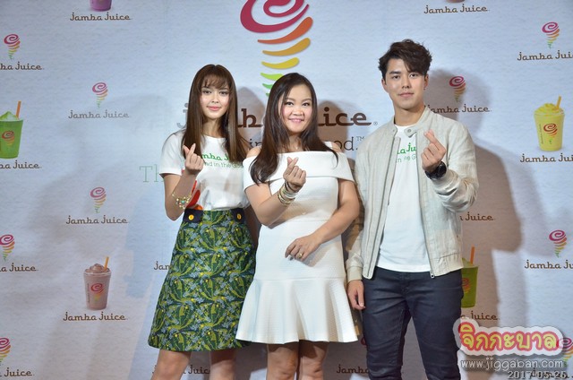 นาย ควง แพท ชิมสมูทตี้น้ำผักและผลไม้ “แจมบาร์ จูซ” สาขาแรกในไทย! มันจะเฟรชๆ หน่อย.. เมื่อพระเอกสุดฮอต นาย-ณภัทร จูงมือนางเอกสาว แพทริเซีย กู๊ด มาเผยเคล็ด (ไม่ลับ) การเลือกเครื่องดื่มเพื่อเพิ่มความสดชื่นระหว่างวัน ในงานฉลองเปิดตัว แจมบาร์ จูซ (Jamba Juice) แบรนด์เครื่องดื่มสมุทตี้น้ำผักและผลไม้สดจากธรรมชาติ อันดับ 1 จากอเมริกา นำเข้าโดย ดร.อุษณีย์ มหากิจศิริ ลีโอณีโอ พร้อมแจกความสดชื่นแฟนๆ ได้ลิ้มลองความที่ได้จากผลไม้สดแท้ๆ ทำเอาใครๆ ต่างติดใจมารอต่อคิวชิมน้ำผักผลไม้กันจนแถวยาวเหยียด ณ บริเวณร้านแจมบาร์ จูซ ชั้น G พารากอน ฟู้ด ฮอลล์ ศูนย์การค้าสยามพารากอน เมื่อวันพฤหัสบดีที่ 25 พฤษภาคม ที่ผ่านมา