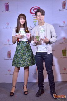 พระเอกสุดฮอต นาย-ณภัทร เสียงสมบุญ ควงนางเอกสาวหน้าใส แพทริเซีย-ธัญชนก กู๊ด มาร่วมปั่น น้ำผักผลไม้ให้แฟนๆ ได้ลิ้มลองความอร่อยสดชื่น ในงานฉลองเปิดตัว แจมบาร์ จูซ (Jamba Juice) แบรนด์เครื่องดื่มสมุทตี้น้ำผักและผลไม้สดจากธรรมชาติ อันดับ 1 จากอเมริกา นำเข้าโดย ดร.อุษณีย์ มหากิจศิริ ลีโอณีโอ ณ บริเวณร้านแจมบาร์ จูซ ชั้น G พารากอน ฟู้ด ฮอลล์ ศูนย์การค้าสยามพารากอน เมื่อวันก่อน