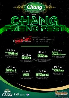 กลับมาอีกครั้งกับที่สุดของเทศกาลคอนเสิร์ตที่คุณและเพื่อนรอคอย Chang Music Connection presents Chang Friend Fest (ช้าง มิวสิค คอนเนคชั่น พรีเซนต์ ช้าง เฟรนด์ เฟส) กับที่สุดของ 3 ศิลปินแห่งยุค บอดี้สแลม , ดา เอ็นโดรฟิน และ โปเตโต้ โดยครั้งแรกวันเสาร์ที่ 10 มิย. นี้ ที่ไบเทค บางนา พบกับเพื่อนศิลปิน พาราด็อกกซ์, ค็อกเทล, อินสติงค์พร้อมชวนเพื่อนๆไป กระโดดให้มันส์สุดๆ โดยประกาศSOLD OUTไปแล้วอย่างรวดเร็ว สาวกสายร็อกทั้งหลายเตรียมไปโดดให้พื้นเวทีสะเทือนกันได้เลย แฟนๆเตรียมตัวไปมันส์กับพวกเค้าและผองเพื่อนที่จะมาแจมกันได้10 มิ.ย. กรุงเทพ ไบเทค บางนา(ฮอลล์98) ใครที่พลาดครั้งแรก ไม่ต้องเสียใจ รีบชวนเพื่อนไปมันส์กันต่ออีก 8 ที่