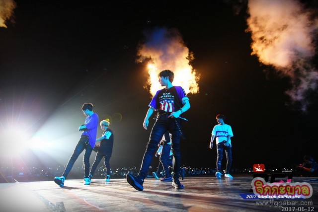 งานนี้เจ็ดหนุ่มเลยตอบแทนด้วยการบอกรักจูเลียตเป็นภาษาไทยพร้อมกันว่า “ผมรักคุณ” แล้วกลับมาสนุกกันต่อในเพลง ‘Nightmare’ (악몽) เพลงป็อปใสๆ ฟังสบาย ต่อด้วยเพลงใหม่ล่าสุด ‘Without U’ (니가 없는데) และ ‘BACK2YOU’ ก่อนจะปิดท้ายด้วยเพลง ‘PRESENT’ ซึ่งขณะที่หนุ่มๆ ตั้งใจมอบเพอร์ฟอร์แมนซ์สุดเท่เพื่อตอบแทนความรักของแฟนๆ จูเลียตชาวไทยเองก็ตอบกลับความรักด้วยการโบกลูกโป่งให้โรมิโอได้รู้ว่าจูเลียตของพวกเขาอยู่ตรงนี้ และรอที่จะได้เจอกันอีกครั้ง นัดแรกจัดว่าแฮปปี้ทั้งโรมิโอ ทั้งจูเลียต แถมความน่ารักเป็นกันเองของหนุ่มๆ ยังได้ใจและขโมยหัวใจแฟนคลับวงอื่นกลับไปด้วยอีกเพียบ!!