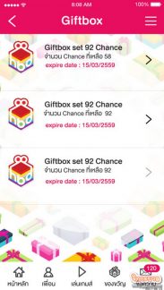 – Giftbox คือ กล่องของขวัญที่สามารถซื้อให้ตัวเองหรือส่งให้เพื่อนได้ โดย Giftbox จะมีราคาซื้อและจำนวน Chances ที่อยู่ในกล่องแตกต่างกันไป
