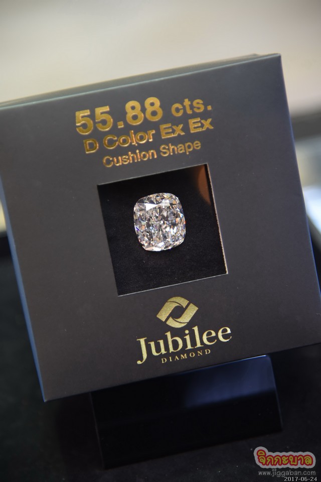โดยงานนี้สาวกคนรักเพชรแท้ตื่นตาตื่นใจกันตั้งแต่หน้างานกับไฮไลต์ เพชร Cushion Shape 55.88 กะรัต D color ที่ถูกนำมาจัดแสดงอวดแสงระยิบระยับ ซึ่งถือเป็นเพชรหนึ่งเดียวในโลก ที่มีน้ำหนักกะรัตเท่ากับเลขมงคลอย่างเลข 5 และ เลข 8 พอดี โดยเป็นเพชรทรงสี่เหลี่ยมตัดมุม ขนาดหน้ากว้างถึง 2.5 เซนติเมตร จากแหล่งเจียระไนเพชรที่ดีที่สุดในโลก เมืองแอนต์เวิร์ป ประเทศเบลเยี่ยม ด้วยคุณภาพเหนือมาตรฐาน D Color เป็นเลิศทั้งเรื่องสี และความพิถีพิถันในการเจียระไน ซึ่งยูบิลลี่ได้รับแรงบันดาลใจมาจากเพชร Jubilee Diamond ของ Queen Victoria ตั้งแต่ ค.ศ. 1897 ซึ่งถือเป็นตำนานของ 1 ในเพชร 100 ชิ้นที่ดีที่สุดในโลก