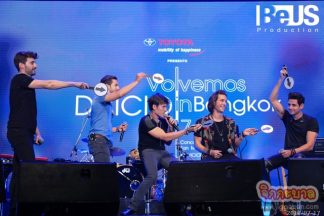 จบเพลงก็ถึงเวลาทักทายและพูดคุยกับทั้ง 5 หนุ่ม บอกเลยว่าเป็นกันเองและน่ารักมาก เริ่มจากการไหว้ที่สวยงามอย่างไทย ต่อด้วยหนุ่มๆแนะนำตัวว่าใครเป็นใครและมีตำแหน่งหน้าที่อะไรบ้างเป็นภาษาไทย แถมยังพูดภาษาไทยอย่างพร้อมเพรียงกันว่า “ประเทศไทยพวกเรากลับมาแล้ว” (รัวลิ้น รอเรือชัดมาก) ซึ่งหนุ่มๆก็อธิบายว่าเป็นประโยคที่ตรงกับชื่องานครั้งนี้ในภาษาสเปนว่า Volvemos แปลว่า”กลับมา” พร้อมกับสอนให้แฟนๆพูดสเปนตามด้วย จากนั้นก็ถึงช่วงถามคำถาม หนุ่มๆตอบกันได้น่ารักทุกคน โดยเฉพาะอย่างยิ่งลูอิส ที่บอกว่าถ้ามีอะไรจะขอแฟนชาวไทยได้หนึ่งข้อ สิ่งที่เขาจะขอนั้นคือ” อยากให้การมาประเทศไทยในครั้งนี้ไม่มีวันจบ และขอให้แฟนๆชาวไทยยังคงเป็นแฟนคลับพวกเขาตลอดไป” เรียกเสียงกรี๊ดกันไปดังๆอีกรอบ ที่เด็ดมากอีกข้อต้องอันเดรสกับที่มาของเพลงเพราะๆ “เวลาผมอกหักก็จะแต่งเพลงใหม่ออกมาเยอะมาก เพราะแบบนี้เลยต้องอกหักบ่อยๆ จะได้มีเพลงออกมาเยอะๆ” คำตอบนี้ทำเอาแฟนๆกรี๊ดหนักมากและที่ขาดไม่ได้ก็ต้องให้หนุ่มๆโชว์สกิลภาษาไทยกัน ที่ชัดเป๊ะจนต้องยกนิ้วโป้งให้อันเดรส เลย แถมกรี๊ดกันสนั่นสุดกำลัง เมื่อเขาพูดว่า “หากไม่มีเธอวันนั้นก็ไม่มีอันเดรสในวันนี้” เอาใจไปกันเลยค่า…..