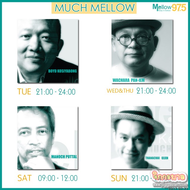กระแสตอบรับดีทีเดียวสำหรับคลื่นวิทยุ Mellow 97.5 ของ บมจ.อสมท โดยเฉพาะช่วง Much Mellow กับ 4 มาสเตอร์ ที่พร้อมถ่ายทอดประสบการณ์ เพื่อเติมพลังให้ชีวิตด้วยดนตรี เวลา 21.00-24.00 น. ทุกวันอังคาร พบกับ พี่บอย โกสิยพงษ์, วันพุธและวันพฤหัสบดี พบกับ พี่เจี๊ยบ-วัชระ ปานเอี่ยม, ทุกวันอาทิตย์ พลาดไม่ได้กับ พี่ป๊อด-ธนชัย อุชชิน และ ทุกวันเสาร์ เวลา 9.00-12.00 น. พบกับ พี่ซัน-มาโนช พุฒตาล แถมงานนี้ทางคลื่นฝากมาบอกว่ากริ๊งกร๊างมาคุยได้ตลอดนะครับที่เบอร์ 02-2457183 หรือ ติดตามความเคลื่อนไหวทุกโซเชี่ยลได้ที่Line;@Mellow975,Instagram; Mellow975 และ Facebook.com/mellow975 เรียกว่าสะดวกแบบไหน เลือกได้เลยนะจ๊ะ