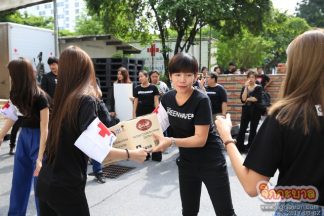 โดยมี พี่ฉอด สายทิพย์ มนตรีกุล ณ อยุธยา ประธานเจ้าหน้าที่บริหาร สายงานธุรกิจ จีเอ็มเอ็ม มีเดีย บริษัท จีเอ็มเอ็ม แกรมมี่ จำกัด (มหาชน) และ เอส วรฤทธิ์ ไวยเจียรนัย ผู้อำนวยการฝ่ายผลิตละคร ช่อง จีเอ็มเอ็ม 25 นำทีม ดีเจจากบ้าน เอ-ไทม์ มีเดีย ได้แก่ ดีเจอ้อย นภาพร ไตรวิทย์วารีกุล คลื่นกรีนเวฟ 106.5 เอฟเอ็ม และดีเจดาว ณัฐภัสสร สิมะเสถียร คลื่น อีเอฟเอ็ม 104.5 พร้อมด้วยนักแสดงจากช่อง จีเอ็มเอ็ม 25 ได้แก่ ญี่ปุ่น นภัส บรรจงจิตไพศาล , วีวี่ สรัณณัฐฐ์ ประดู่คู่ยามดี , เจได ยุน , พรอยมน มนสภรณ์ ชาญเฉลิม และ กิต ณัฐกิตติ์ นันทพานิช เป็นตัวแทนช่วยกันลำเลียงสิ่งของจำเป็นต่างๆ เพื่อเตรียมส่งมอบไปยังผู้ประสบอุทกภัย โดยมี นายแพทย์พิชิต ศิริวรรณ รองผู้อำนวยการ และ นางสาวภาวิณี อยู่ประเสริฐ ผู้ช่วยผู้อำนวยการ สำนักงานบรรเทาทุกข์และประชานามัยพิทักษ์ สภากาชาดไทย เป็นผู้รับมอบ ณ สำนักงานบรรเทาทุกข์ และประชานามัยพิทักษ์ สภากาชาดไทย